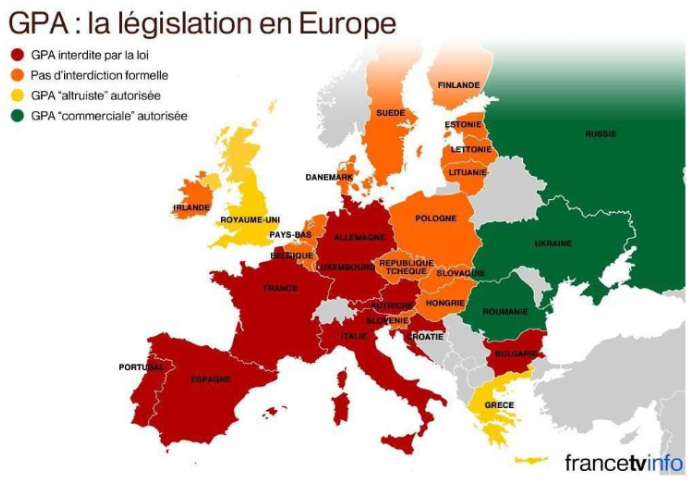 La législation de la GPA en Europe, en 2014. | MATHIEU DEHLINGER / FRANCETV INFO